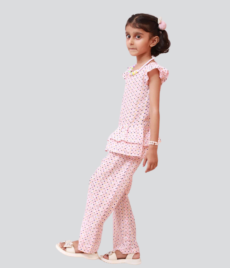 The My Hearts 2pc Set for Girls features a charming heart-patterned top and matching shorts, perfect for playful days. Made from soft, breathable fabric, it ensures comfort and style all day long. Ideal for school, playdates, or casual outings.