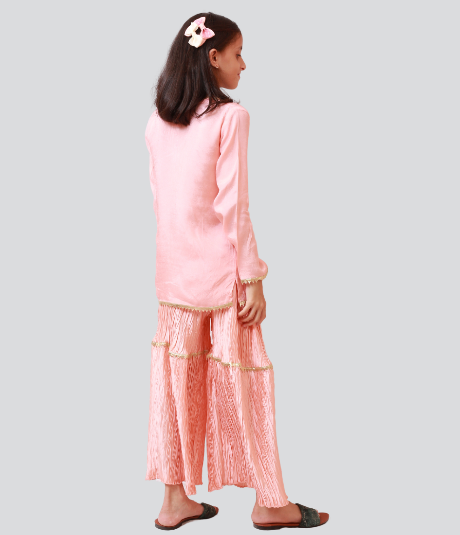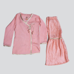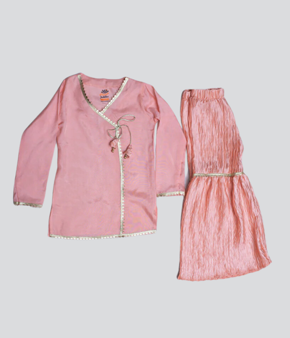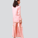 A beautiful pink gharara suit featuring delicate embroidery, flared gharara pants, and a matching dupatta. Ideal for weddings, festive events, or special occasions.