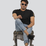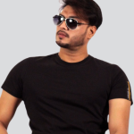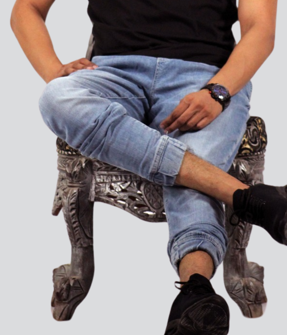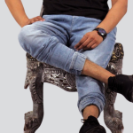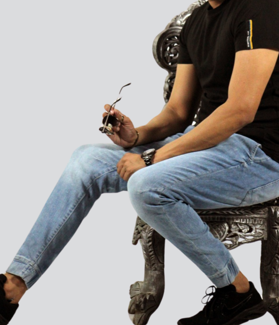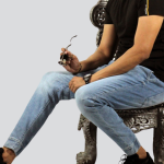 Men’s round neck polyester black t-Shirt with jeans