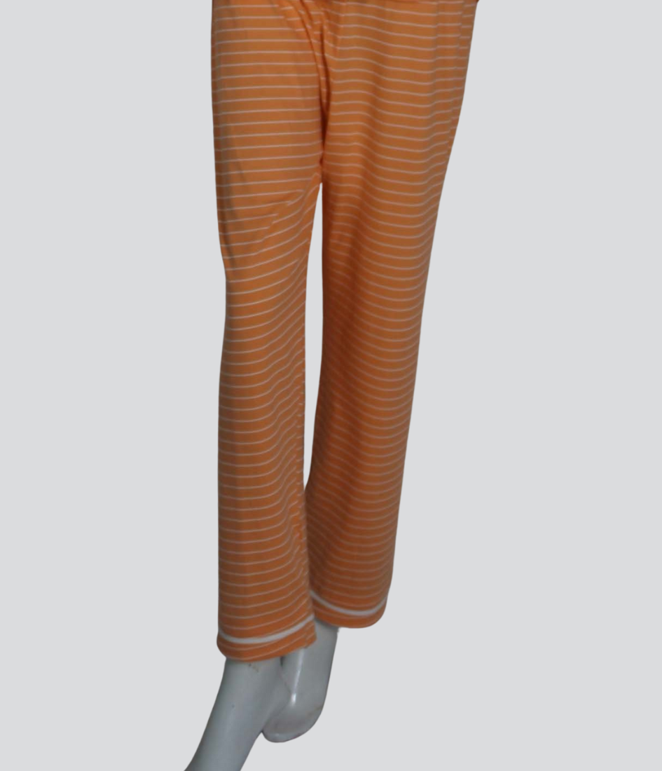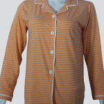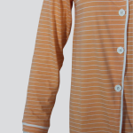 A flowing midnight orange nightdress with delicate lace trim, perfect for serene slumber under moonlit skies. A cozy and stylish orange nightdress with white stripes and buttons. Its long sleeves and collared neckline provide extra comfort, making it perfect for a relaxed and comfortable night’s sleep.